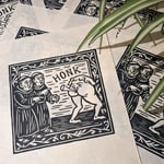 A brand new print for 2026, inspired by medieval characters doodled by priestly scholars in the marginalia of manuscripts.