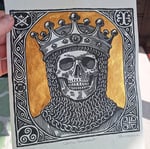 Haunting and regal, this A4 linocut print portrays an ancient skeletal Celtic king, cloaked in mystery and myth. A relic of forgotten times, he stands as a stark reminder of the power and impermanence of rule—his crown intact, his gaze eternal.