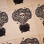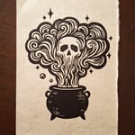 Bubble, bubble, something wicked brews... This small but striking A5 linocut print captures the essence of a deadly potion bubbling away in a shadowy cauldron, conjuring visions of witches’ kitchens, alchemical experiments, and ancient spells gone deliciously wrong.